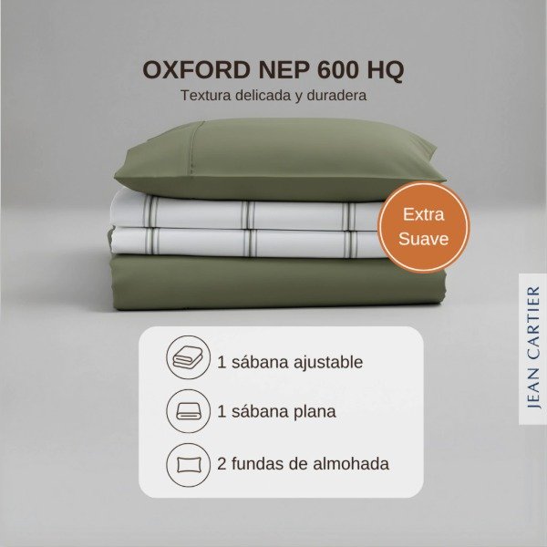 La línea Oxford de Jean Cartier destaca por su calidad y diseño, convirtiendo tu espacio en un refugio de estilo y confort. Con un peso total de 1700 g y un embalaje adicional, este juego de sábanas es fácil de manejar y almacenar, garantizando una experiencia de compra sin complicaciones.