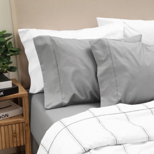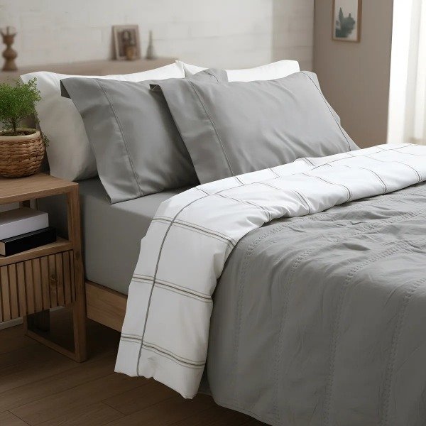 Fabricado en 100% poliéster, este producto no solo es duradero, sino que también es hipoalergénico, ideal para quienes buscan un ambiente de descanso saludable. Las dos fundas de almohada, de 75 cm x 50 cm, complementan el conjunto, brindando un toque de sofisticación a tu dormitorio.